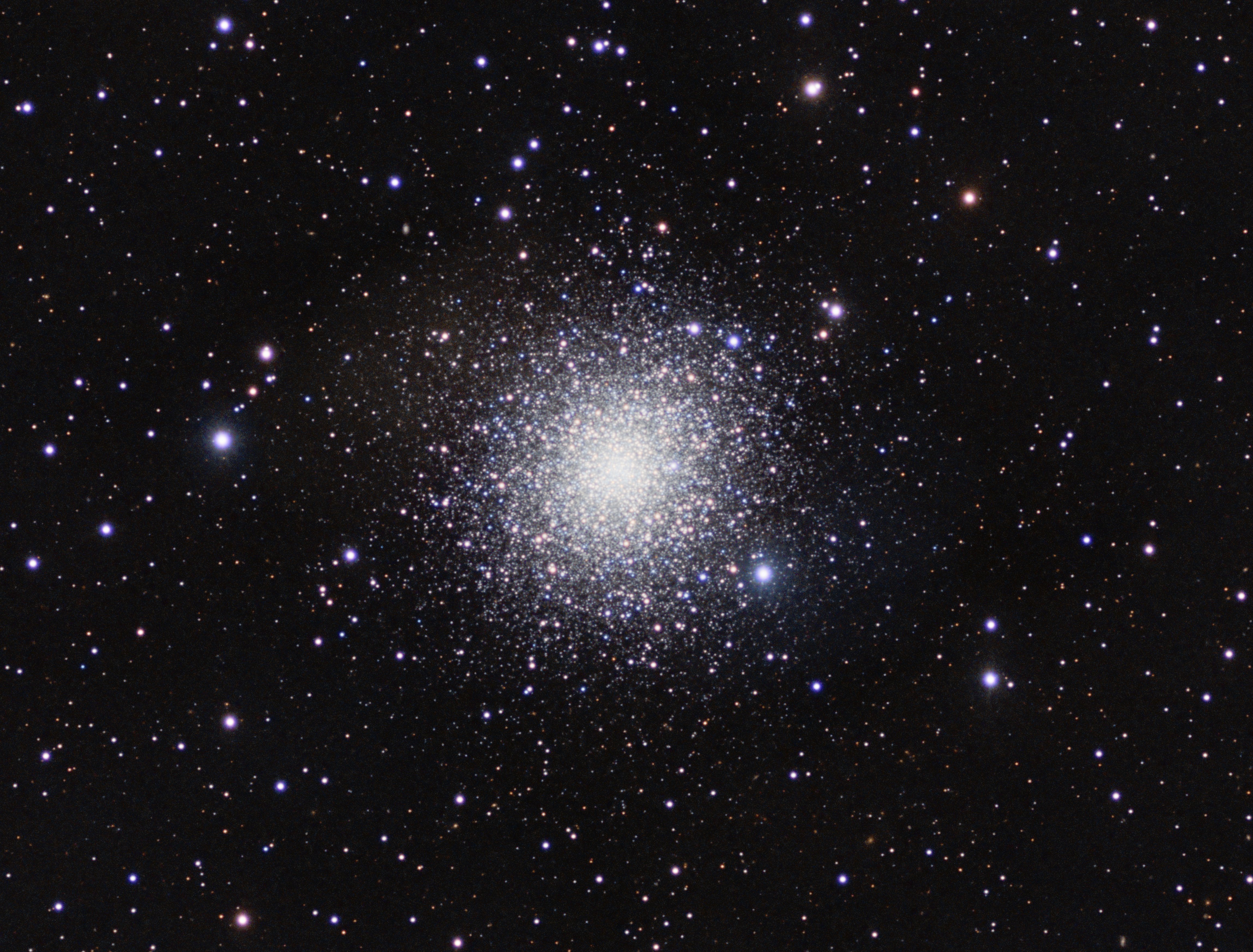 Messier 2, a globular cluster located in Aquarius. One of the largest size wise globular clusters know at 175 light years across. Home to over 150,000 stars. Its age is estimated at 13 billion years, making it one of the older globular clusters.