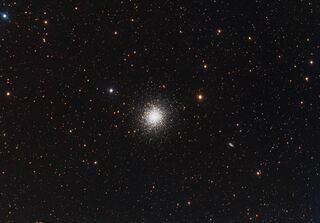 The cluster contains an estimated 300,000 stars stretching across a diameter of 145 light years. Globular clusters tend to be quite old objects with their stars containing very little of the metal elements.